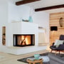 Der Panoramakamin hat drei verglaste Brennraumseiten und erlaubt damit den Blick auf das flackernde Holzfeuer von allen Seiten. Durch die originelle Konstruktion mit drei Glasscheiben schaffen Panorama-Kamine eine einzigartig offene Wohnatmosphäre. Ganz egal ob modern oder gemütlich eingerichtet, dieser Kamin wird in jedem Raum zu einem besonderen Blickfang.